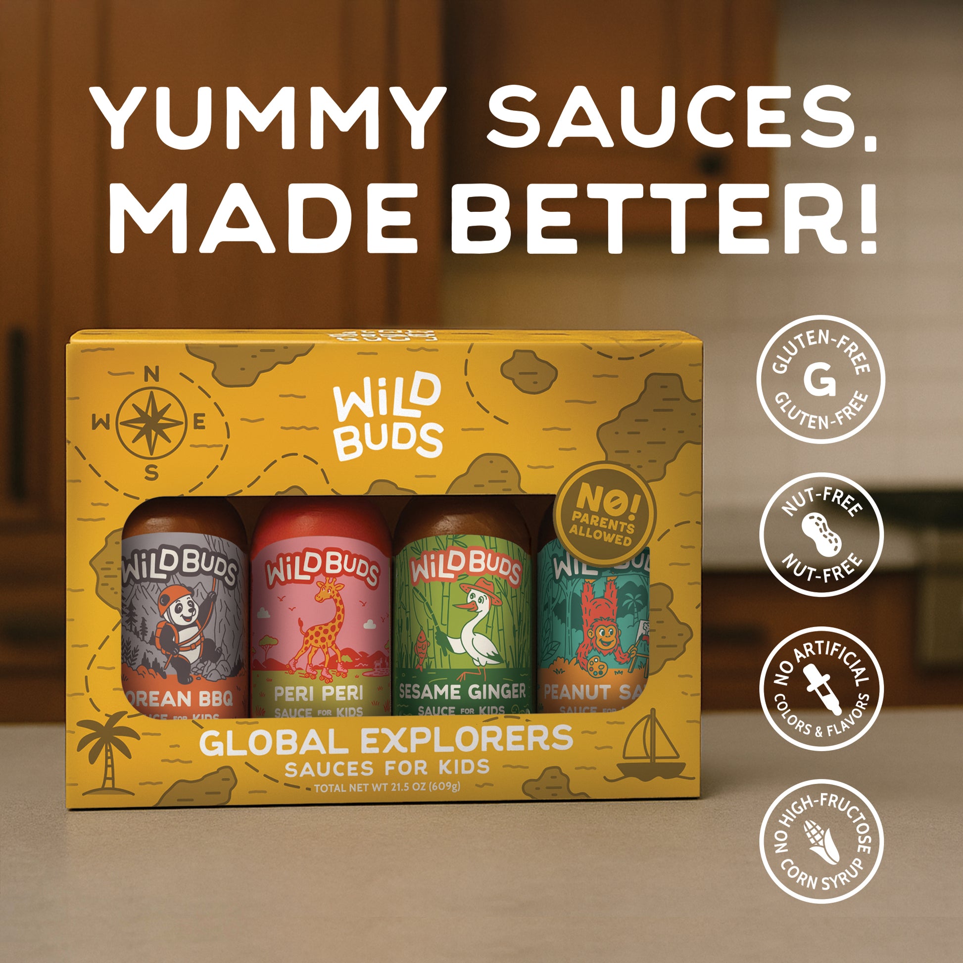 Embark on a global flavor journey with Wild Buds’ Global Explorers, a one-of-a-kind variety pack crafted for kids who love to discover new tastes. Each 4-oz bottle features kid-friendly flavors from around the world, reimagined with cleaner ingredients, lower sugar, and reduced sodium. Designed for small hands and big imaginations, Global Explorers turns every meal into an opportunity for culinary adventure.